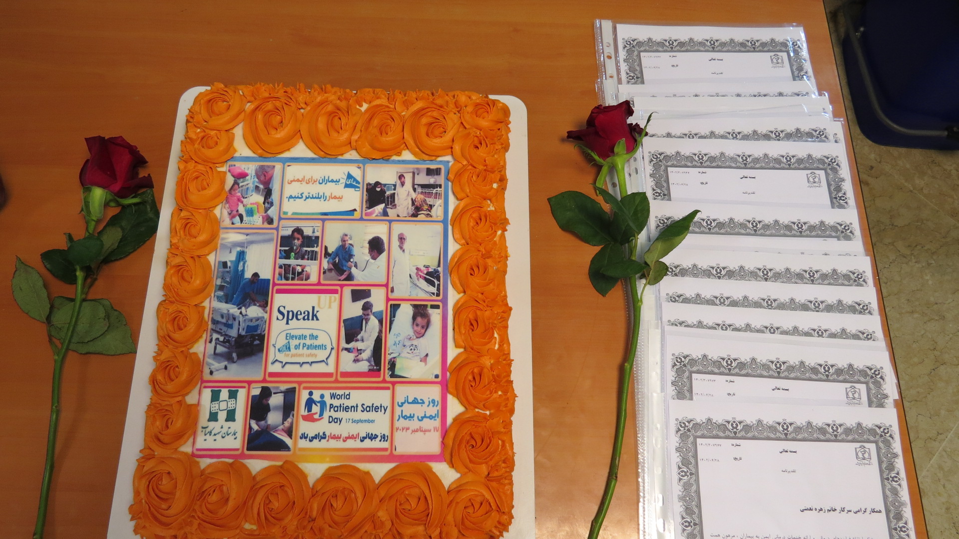 به همین مناسبت جشن گزارش دهی خطا در بخش جراحی 3 که بیشترین گزارش دهی را داشته است با اهدای تقدیرنامه و کیک با محتوی شعار روز جهانی ایمنی بیمار و اهدای جایزه به فعالان عرصه ایمنی برگزار شد و در پایان از همکارانی که پیشنهادها و راهکارهای خلاقانه برتر در راستای ارتقای ایمنی بیماران ارائه کرده بودند با اهدای لوح قدردانی بعمل آمد.