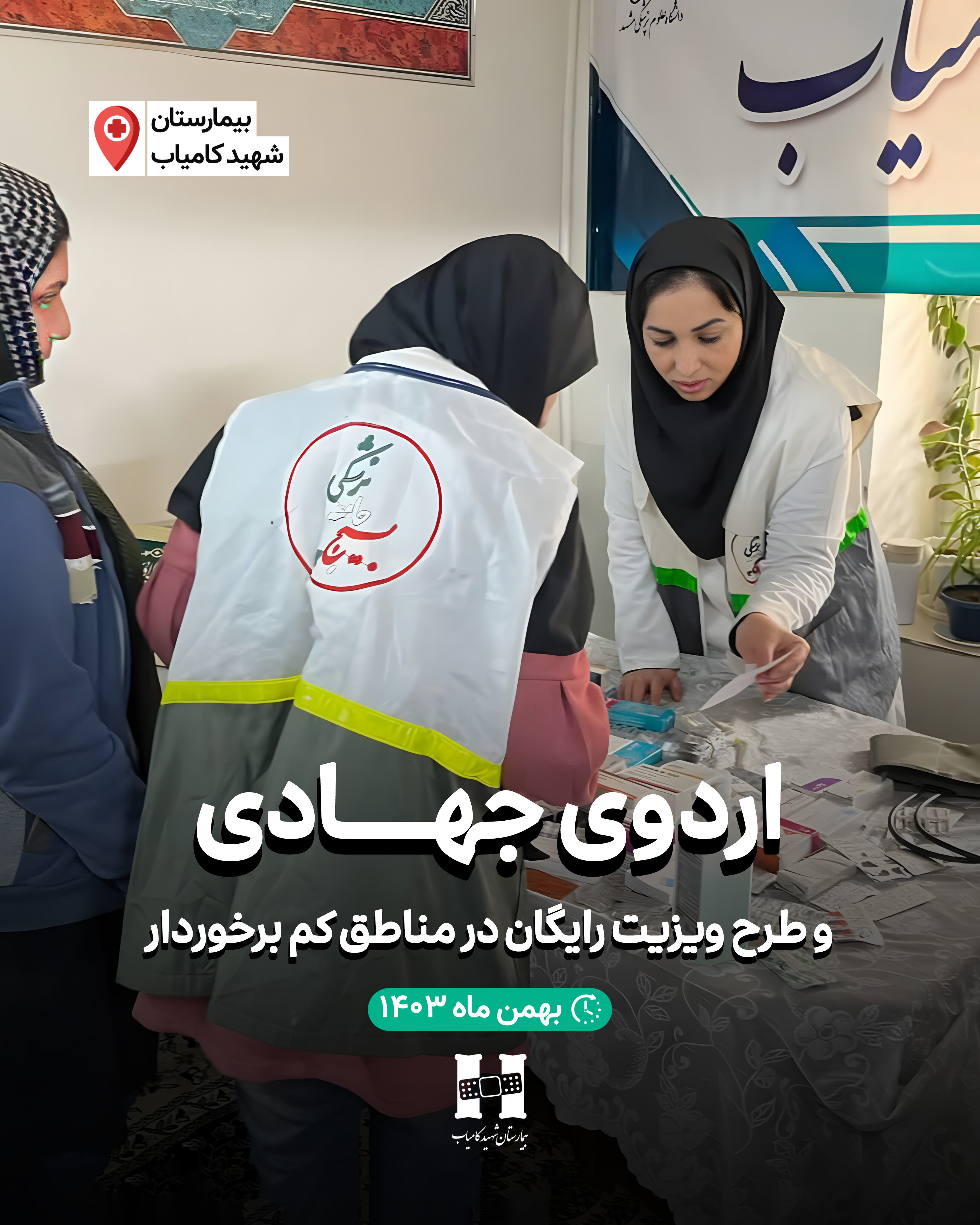 اردوی جهادی بسیج جامعه پزشکی بیمارستان شهید کامیاب در منطقه کم برخوردار مهر مادر به مناسبت دهه مبارک فجر انجام شد .