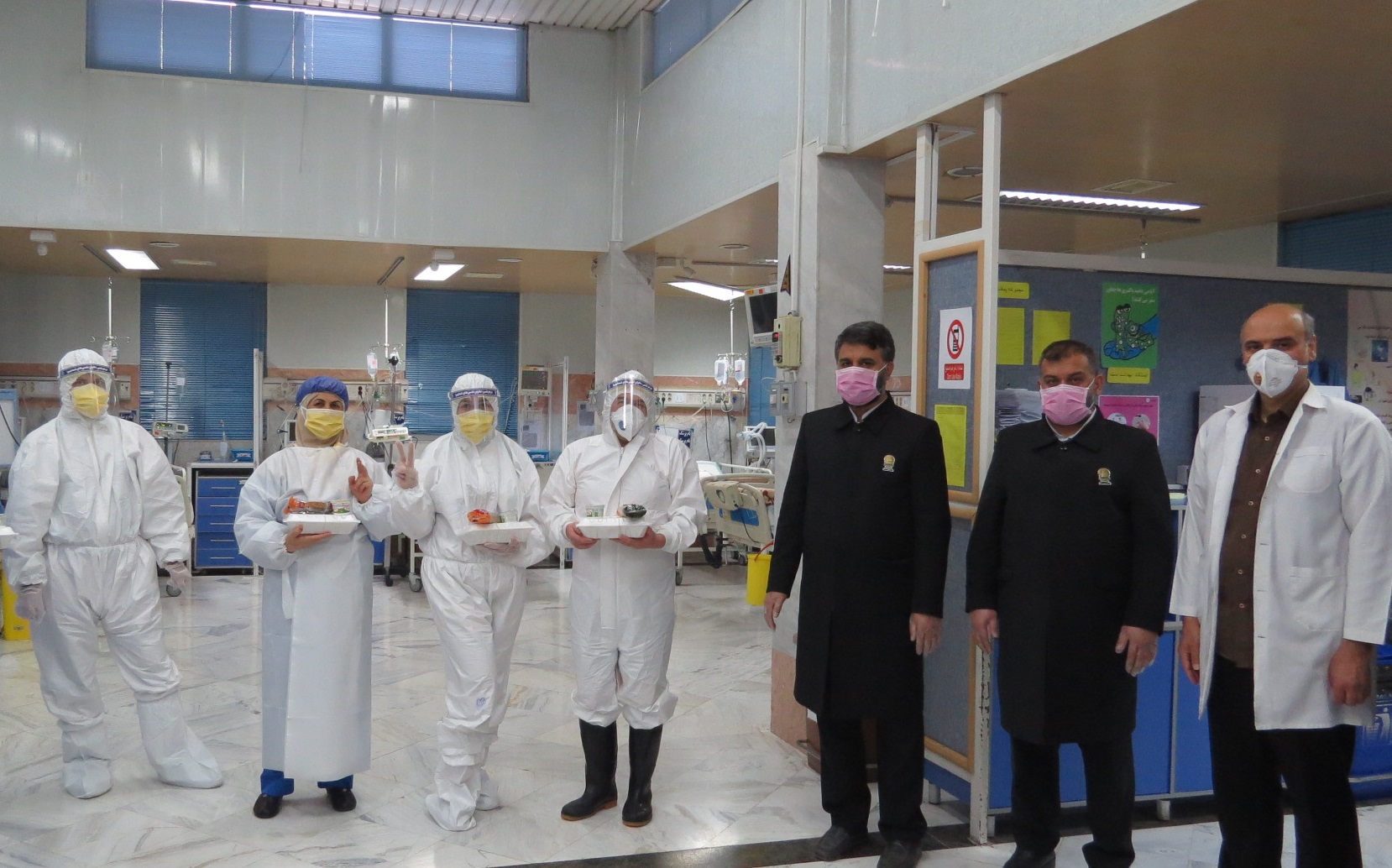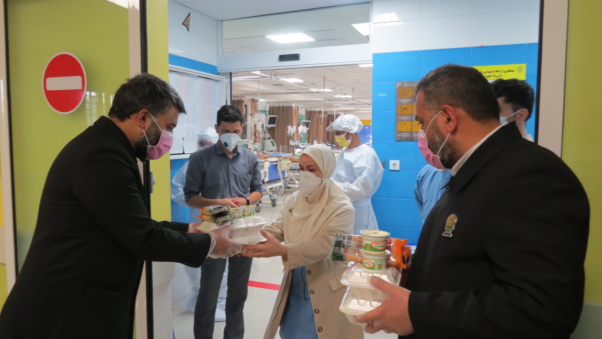 استشمام عطر متبرک رضوی در بیمارستان شهید کامیاب و قدردانی خادمان رضوی از مدافعان سلامت