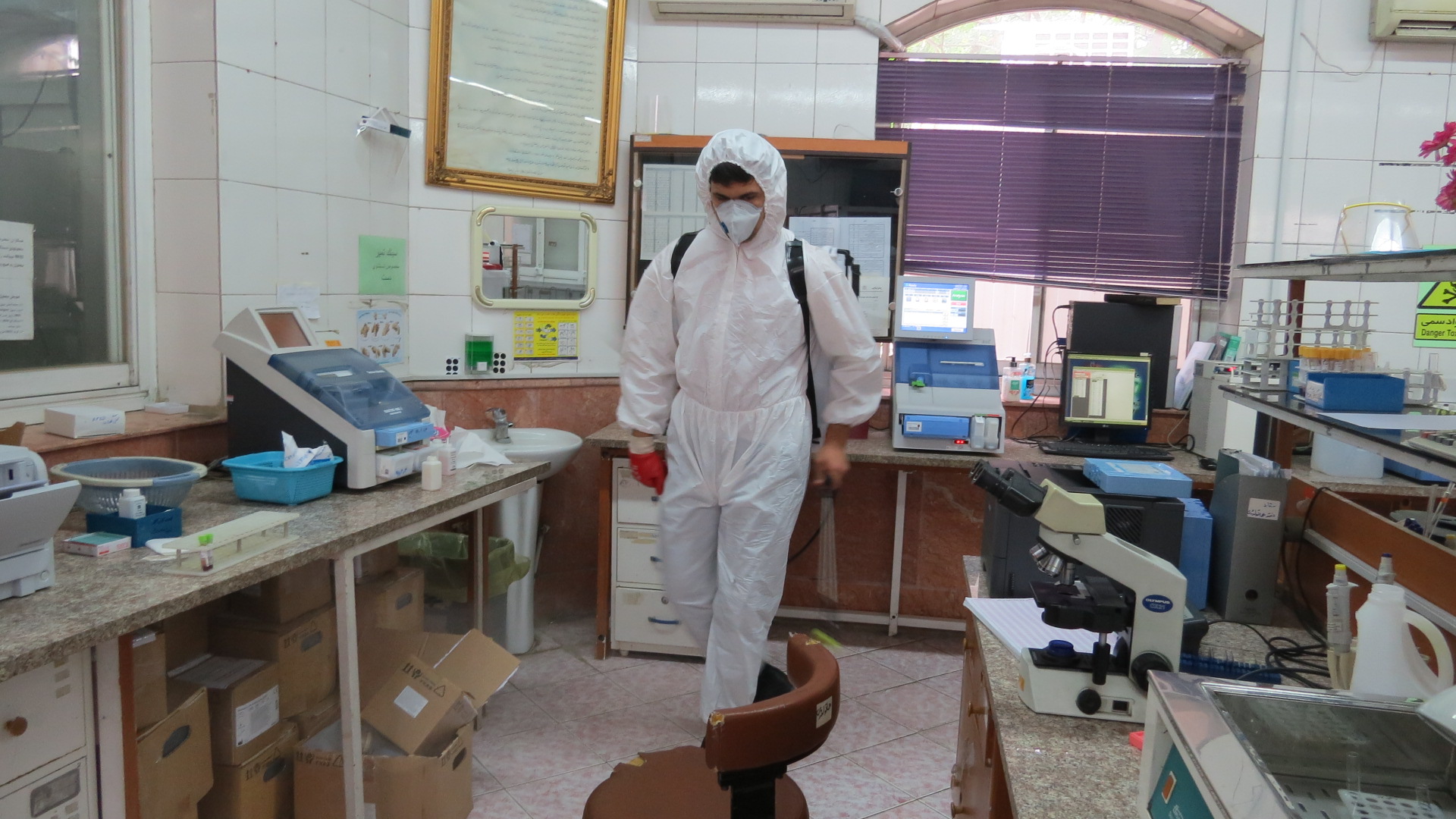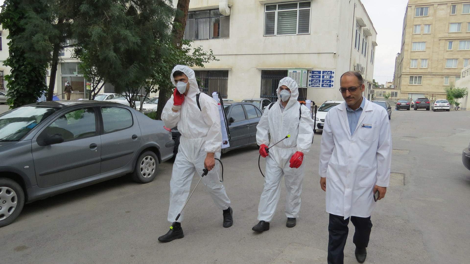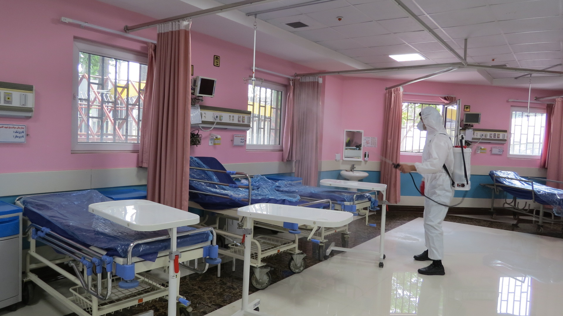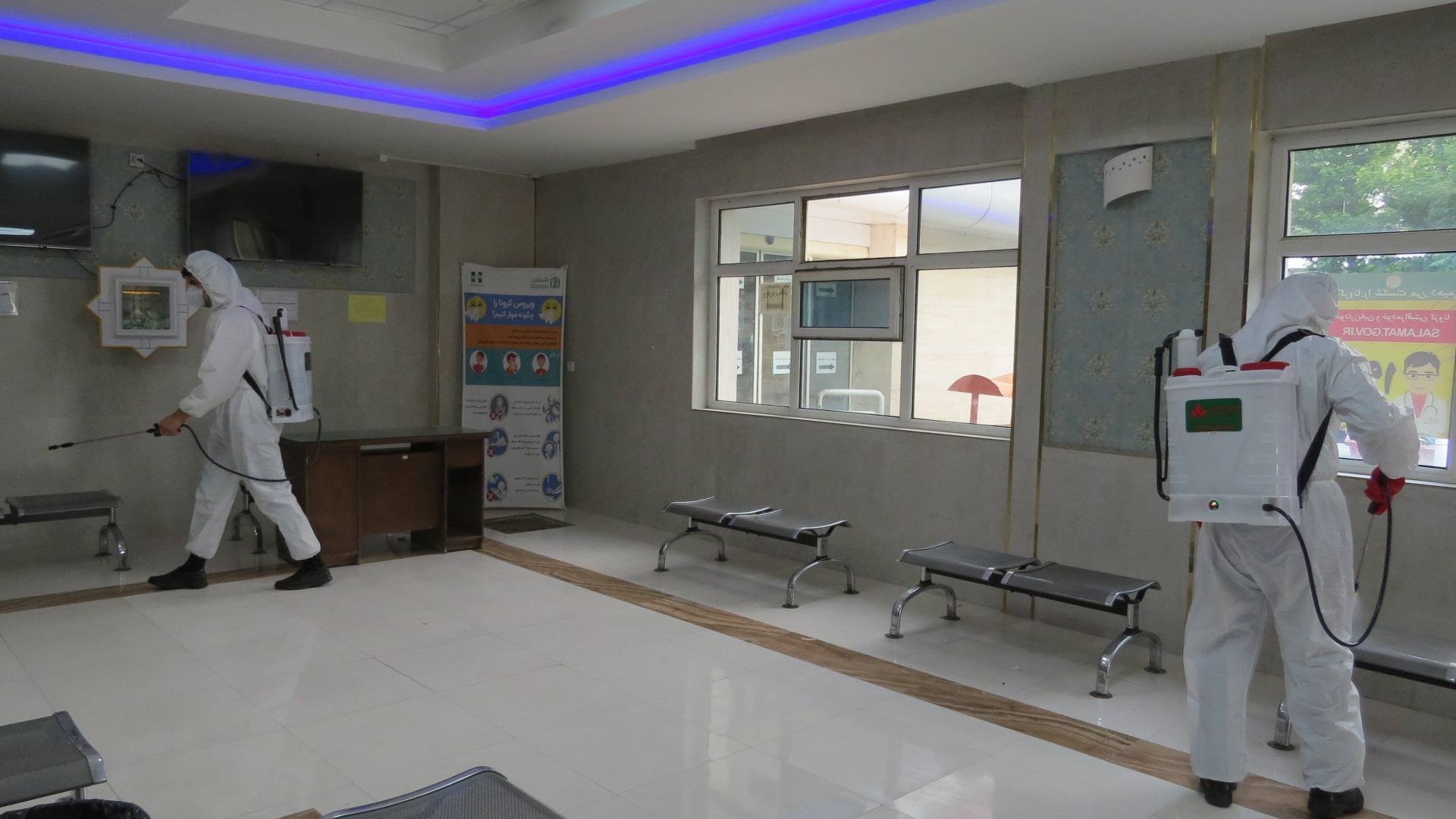 ضدعفونی بیمارستان شهید کامیاب توسط نیروهای داوطلب آتش نشانی