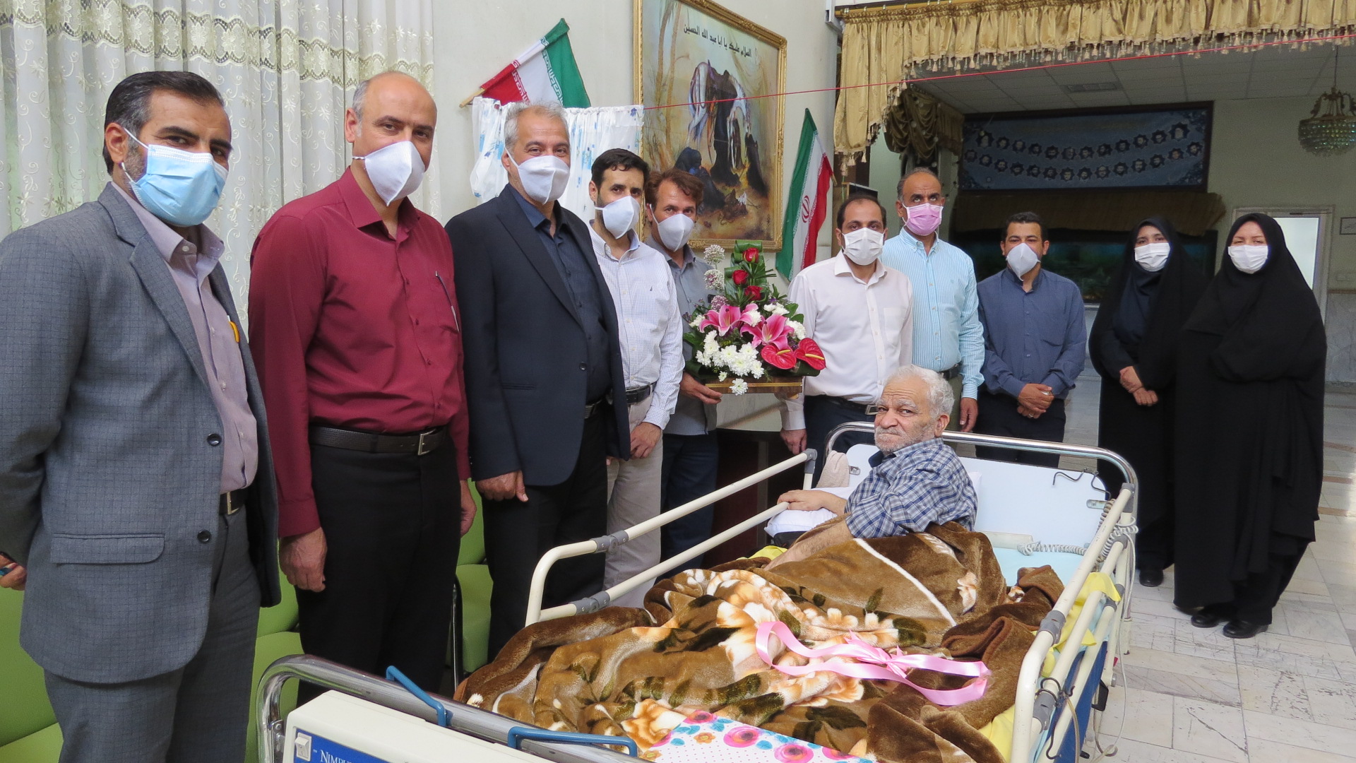 در راستای پاسداشت از ایثارگران و جانبازان هشت سال دفاع مقدس ، صبح امروز 27 خرداد 99 مدیریت و جمعی از مسئولین بیمارستان شهید کامیاب با حضور در آسایشگاه توان بخشی امام خمینی (ره ) واقع در پارک ملت مشهد به عیادت حاج غلامرضا نيكنام جانباز 75% قطع نخاعی رفتند .