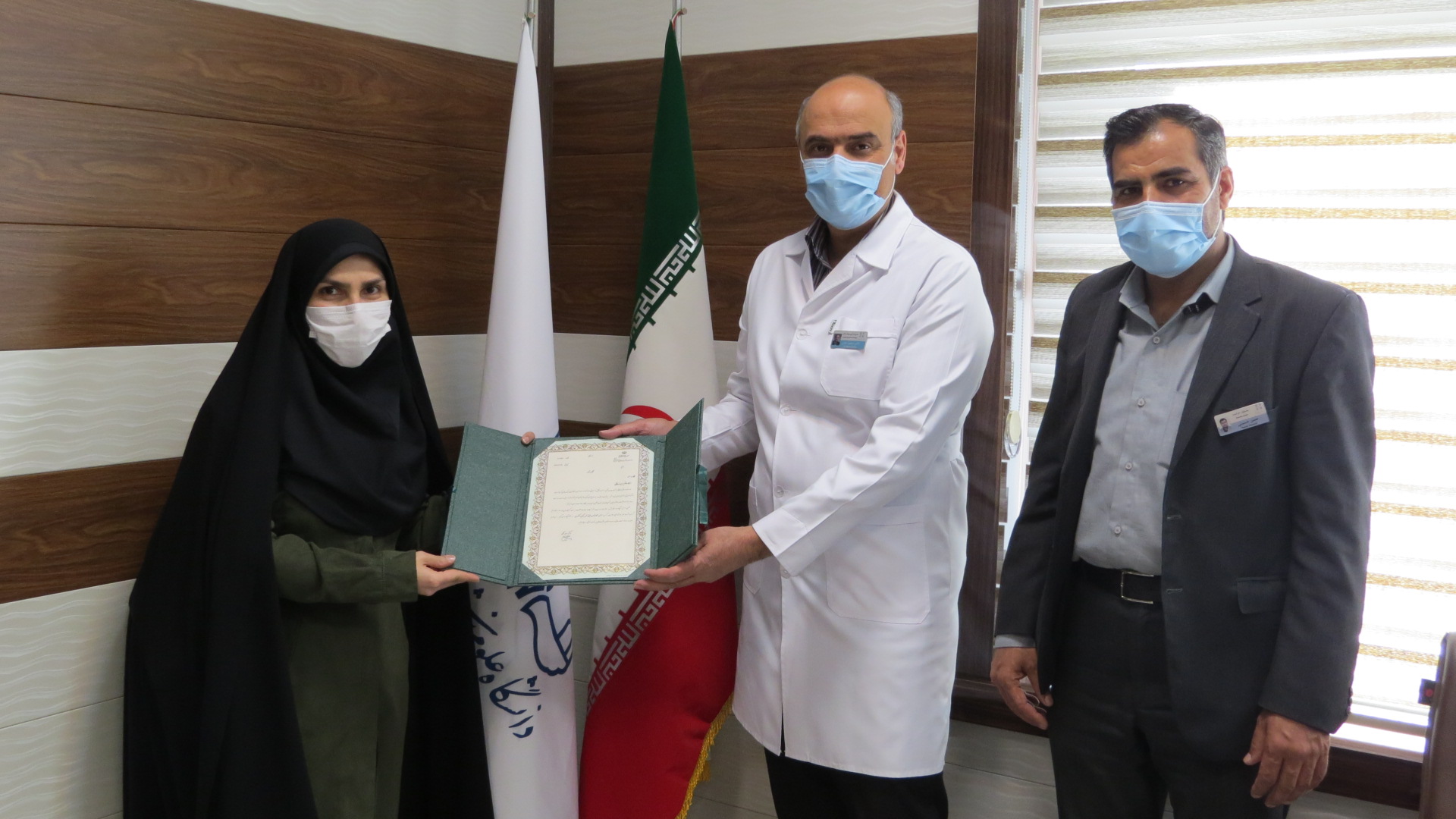به گزارش روابط عمومی ، مدیر بیمارستان شهید کامیاب طی مراسمی لوح تقدیر سرکار خانم زهره زرقانی که بمناسبت روز پرستار بعنوان برگزیده کشوری در سمت کارشناس اتاق عمل انتخاب و به امضاء جناب آقای دکتر سعید نمکی وزیر محترم بهداشت و درمان رسیده بود را شخصا" تقدیم حضور این همکار گرانقدر نمودند .