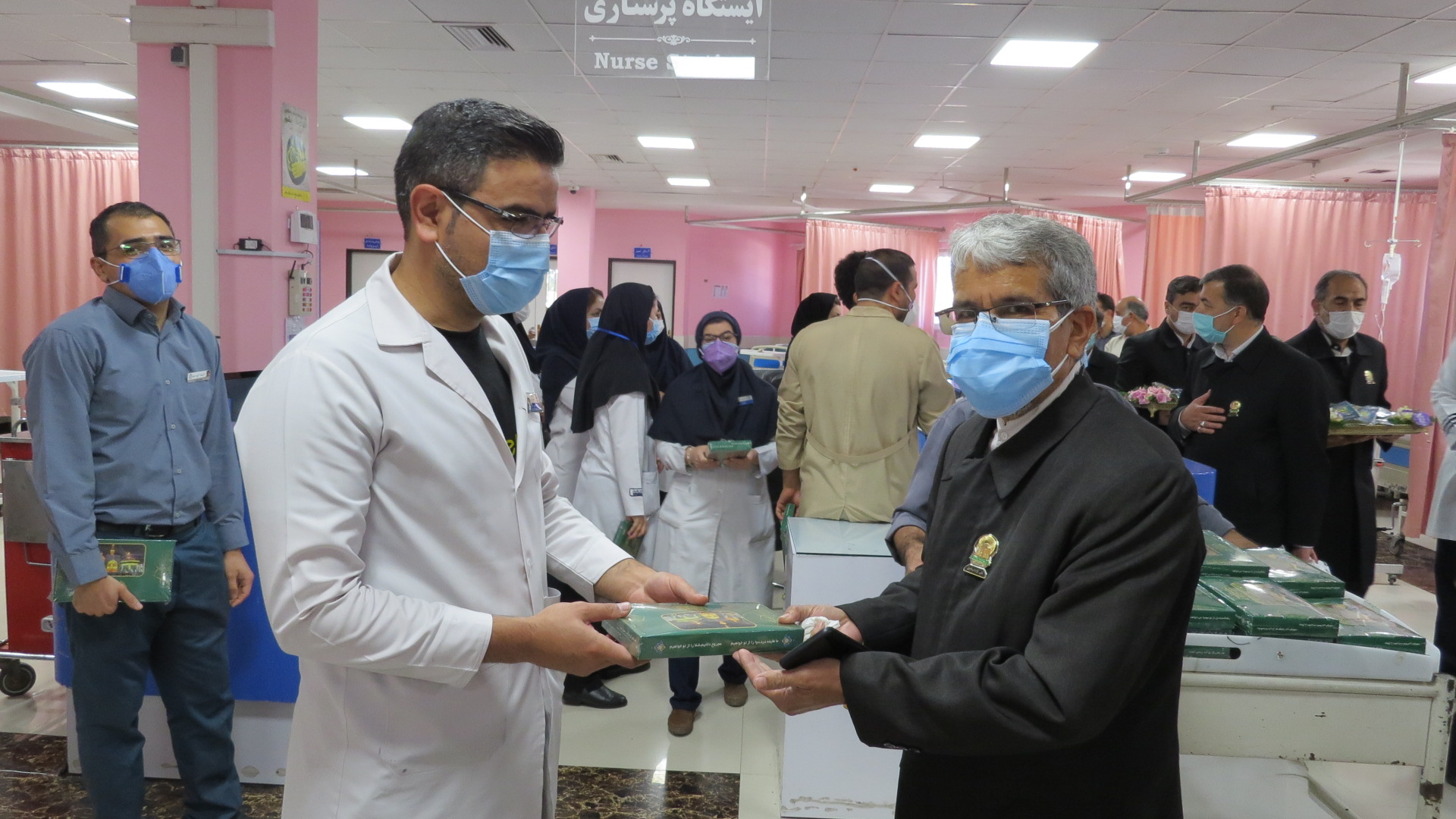 دکتر مسعود خانی مدیر بیمارستان شهید کامیاب که در این بازدید خدام امام رئوف علیابن موسی الرضا(ع) را همراهی می کرد ضمن استقبال از این اقدام زیبا و عرفانی خدام رضوی که سبب دلگرمی و آرامش خاطر کارکنان و بیماران شد از جناب آقای علی نژاداسماعیل سوپر وایزر بالینی و خادم الرضا (ع) که این مهم را تدارک دیده بودند قدردانی کرد.