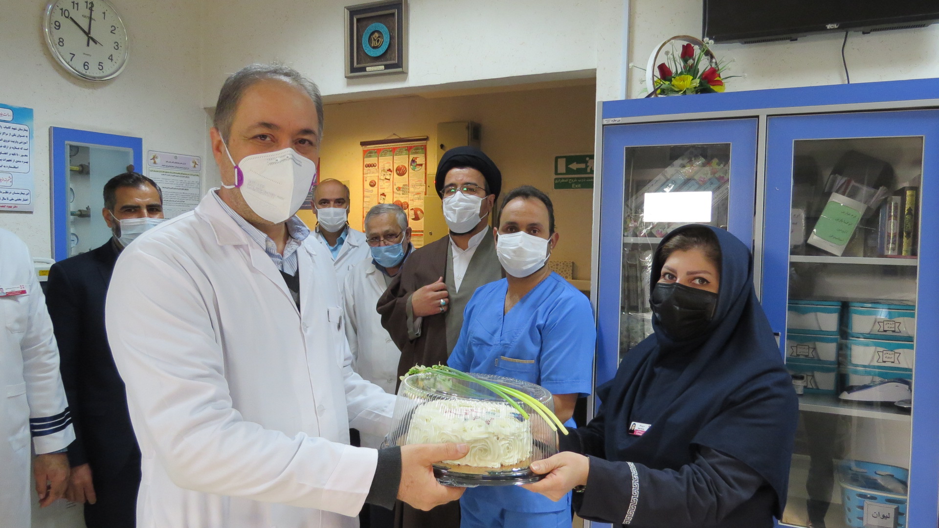 بمناسبت ولادت با سعادت حضرت زینب (س) و گرامیداشت مقام پرستار دکتر علیرضا محمودی قرائی رئیس بیمارستان شهید کامیاب بهمراه دکتر مسعود خانی مدیر مرکز ، فریدون هاشمی مدیر پرستاری ، حسن حسینی مسئول حراست ، دکتر حسن عارفی نیا رئیس امور اداری ، فاطمه عباسپور مسئول دفتر بهبود کیفیت و دیگر مسئولین مرکز از همه بخشهای پرستاری ، پاراکلینیک ،آموزش ، داروخانه ، لنژری ، انتظامات و سایر واحدهای پشتیانی و اداری بازدید به عمل آورده و با اهداء کیک ویژه روز پرستار و شاخه گل رز این عید فرخنده را به همه همکاران تبریک و تهنیت گفتند.