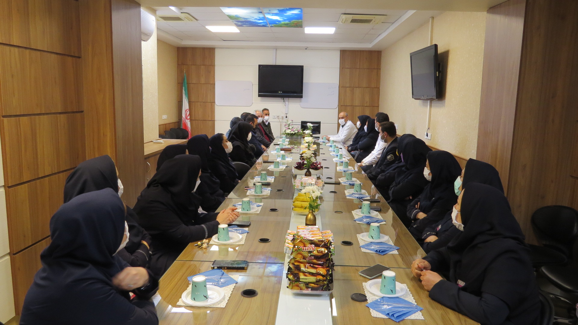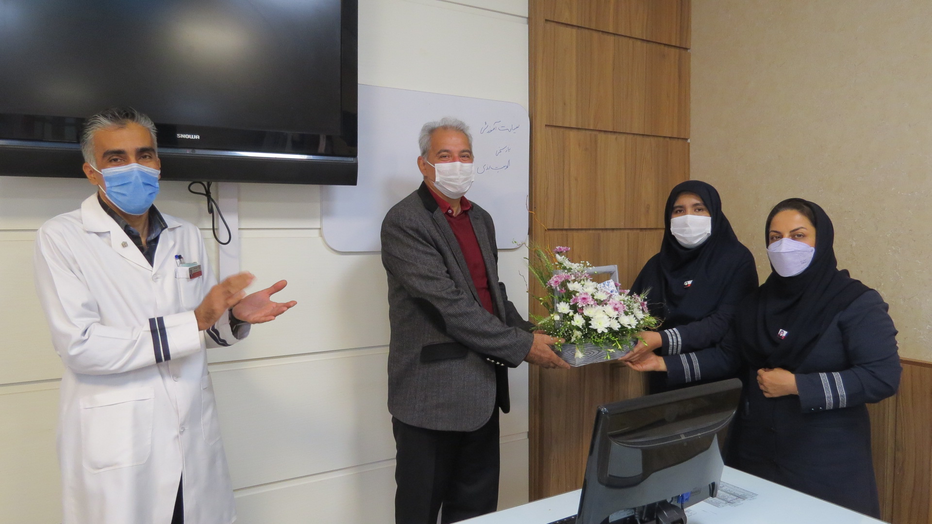 ظهر امروز شنبه 29 اسفند ماه 1400 مراسمی با حضور مدیریت , حراست, امور مالی ، مترون ، سرپرستارها و سایر مسئولین بیمارستان جهت تکریم جناب اقای فریدون هاشمی مدیر پرستاری اسبق بیمارستان که پس از سی و دو سال خدمت صادقانه به افتخار بازنشستگی نایل آمدند برگزار شد.
