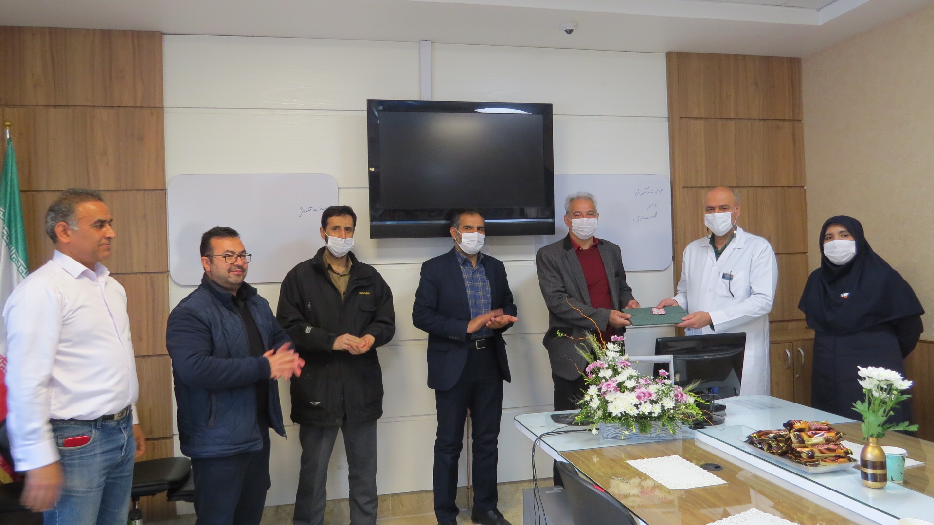 در انتهای مراسم لوح تقدیر ، گل و هدایایی که توسط همکاران تهیه شده بود به رسم یادبود تقدیم ایشان شد.