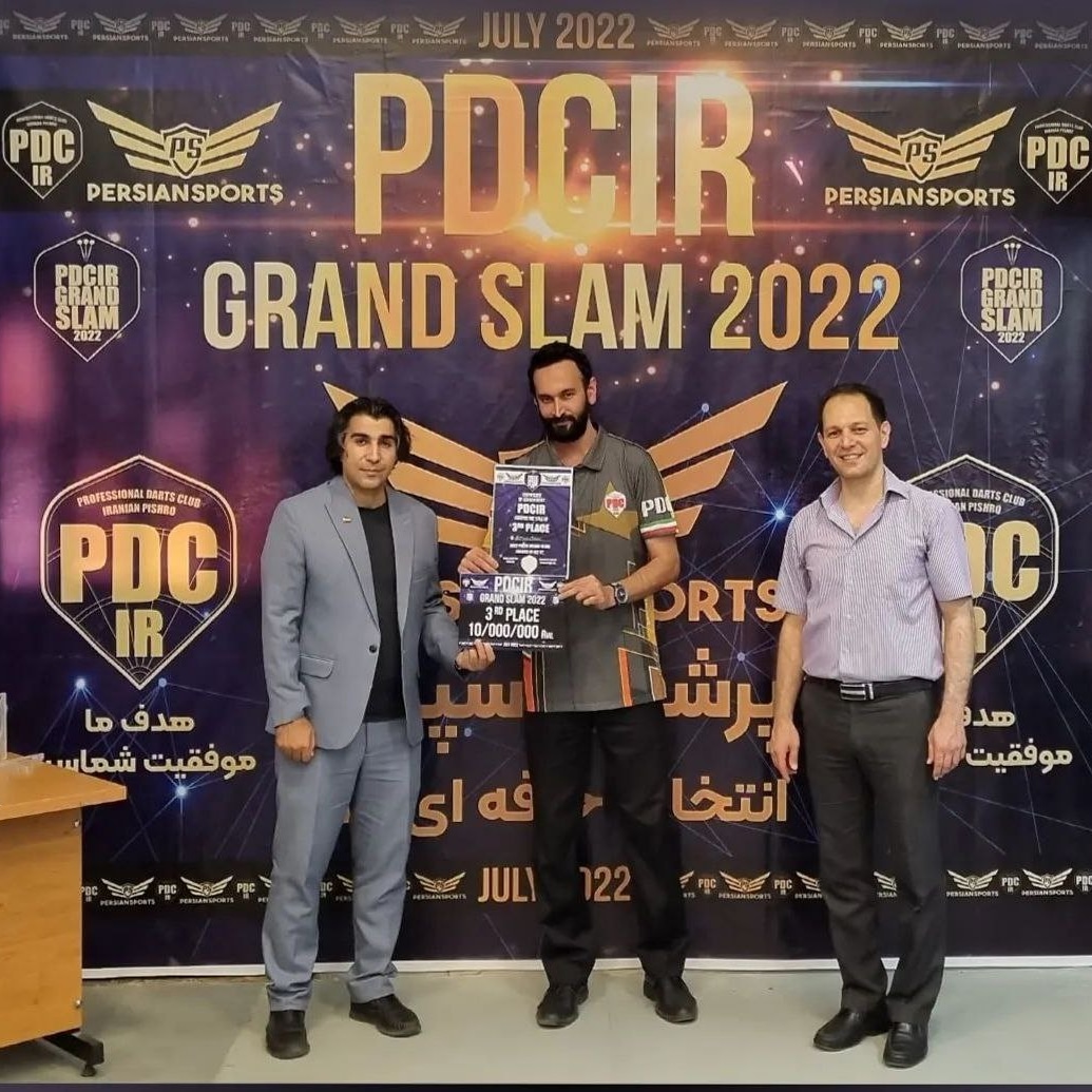 مقام سومی علیرضا عشرتی همکار واحد حفاظت فیزیکی بیمارستان در مسابقات دارت گرند اسلم